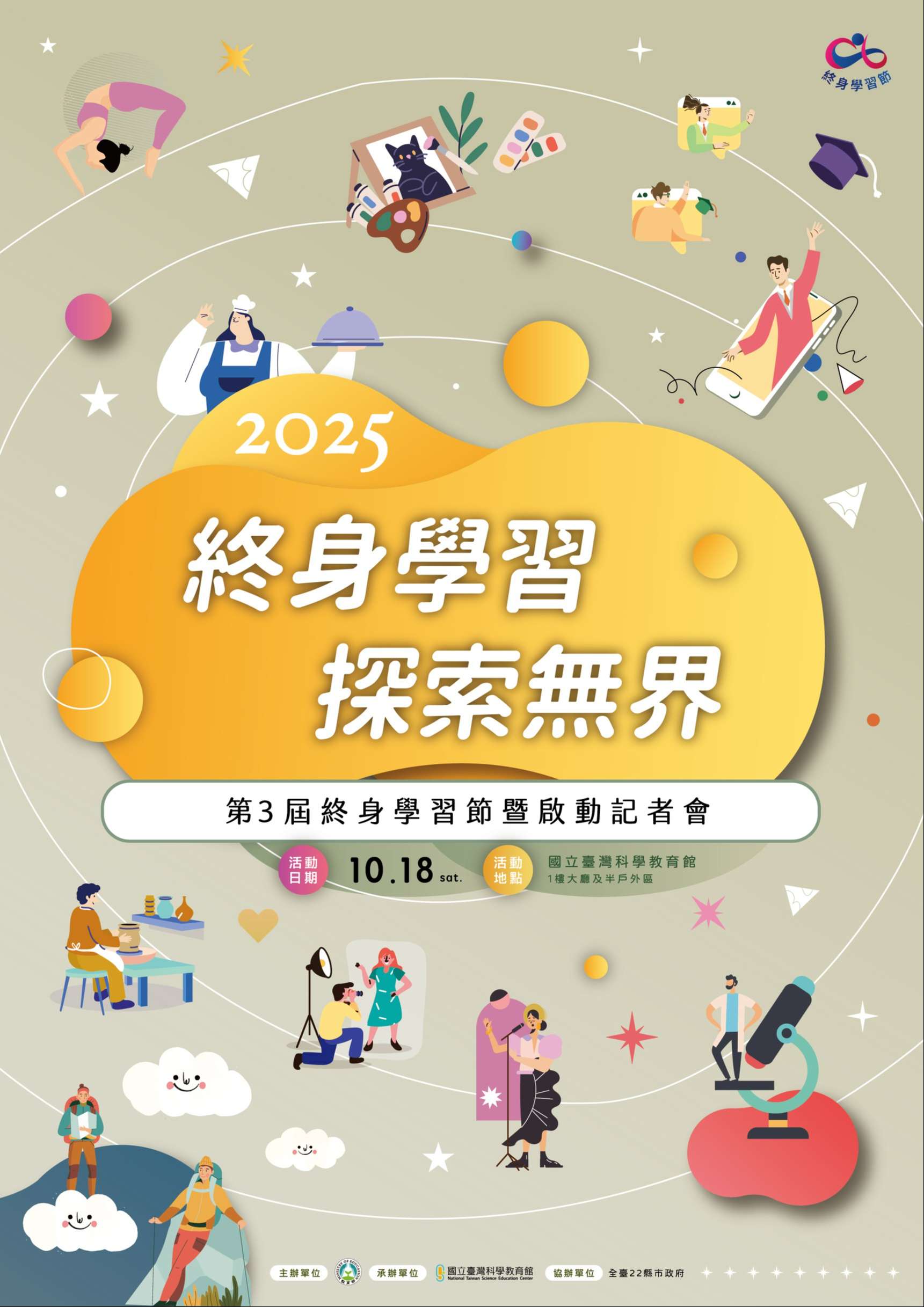 二、為提升國人終身學習意識,建構終身學習社會,教育部延續112年辦理首屆終身學習節之基礎,特訂於114年10月18日(星期六)假國立臺灣科學教育館辦理教育部第3屆『終身學習節』啟動記者會。